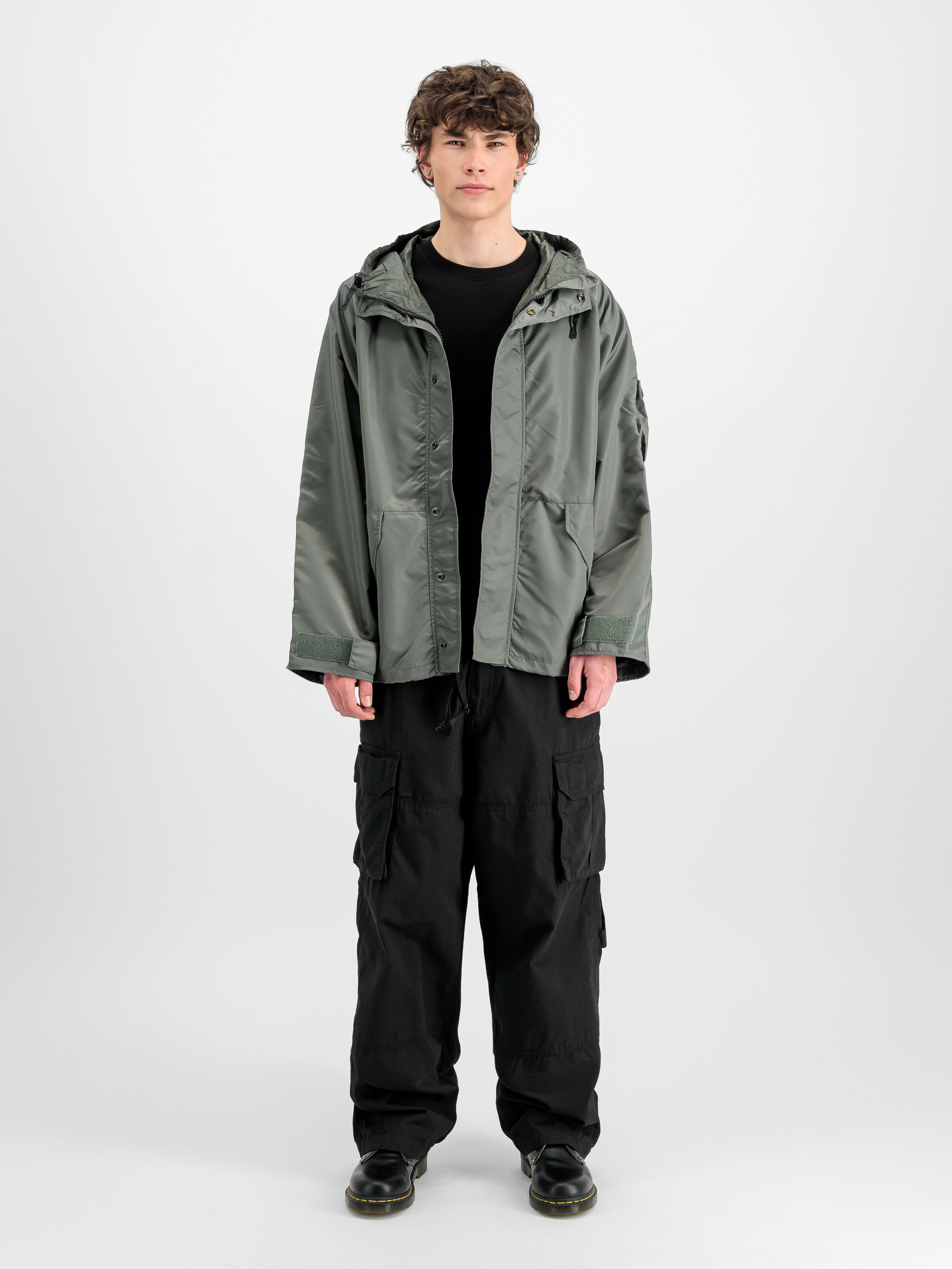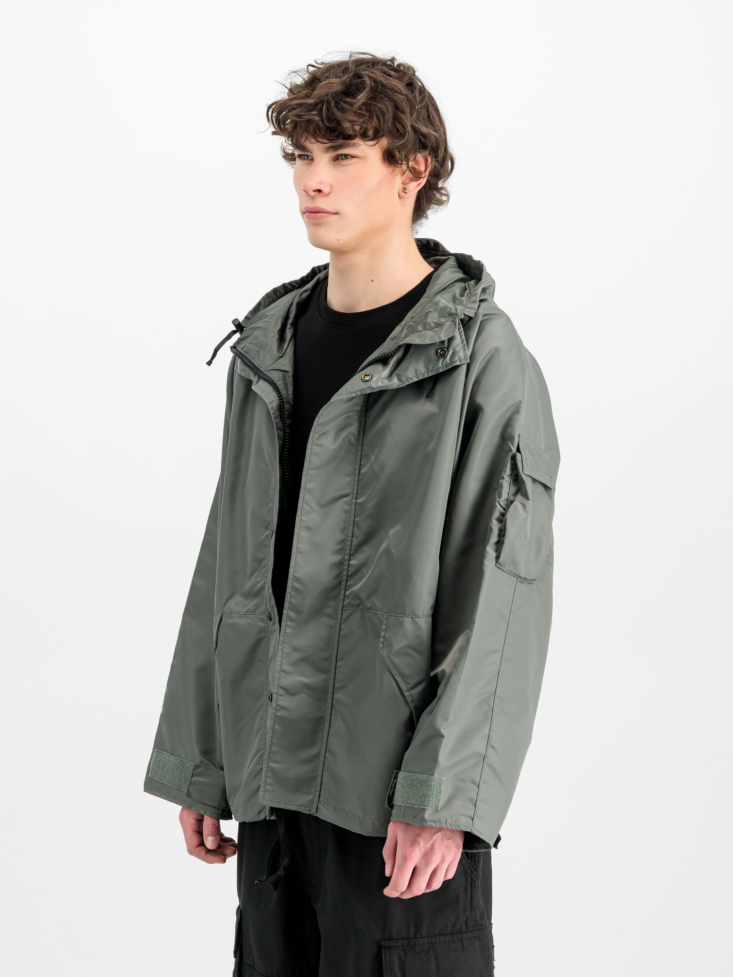 The Alpha x thisisneverthat Cold Weather Parka combines the military DNA of Alpha Industries with the progressive streetwear of the South Korean label thisisneverthat. Made from 100% nylon in heavy nylon twill, it brings durability and structure to your look. The relaxed fit ensures maximum freedom of movement and a laid-back drape – both functional and bold. Hidden zippers under the arms provide extra ventilation, perfect for dynamic movement or layered urban styling. Two large flap pockets with Velcro and snap-button closures at the front underline the tactical nature of the design, while the Velcro pocket on the left sleeve delivers the signature Alpha detail you know. Adjustable Velcro straps at the cuffs allow for a personalised fit, while the drawstring hood offers added protection from wind and weather. The parka is unlined, keeping it lightweight yet durable – ideal for transitional temperatures and everyday use in the city. A subtle flag label featuring the Alpha and thisisneverthat logos on the right outer pocket marks the collaboration between two brands defined by authenticity and function. More than outerwear, this parka is an attitude: technical precision meets street credibility. Whether worn open or closed, with cargo trousers or denim – this style delivers exactly what it promises: urban, clean, mission ready.