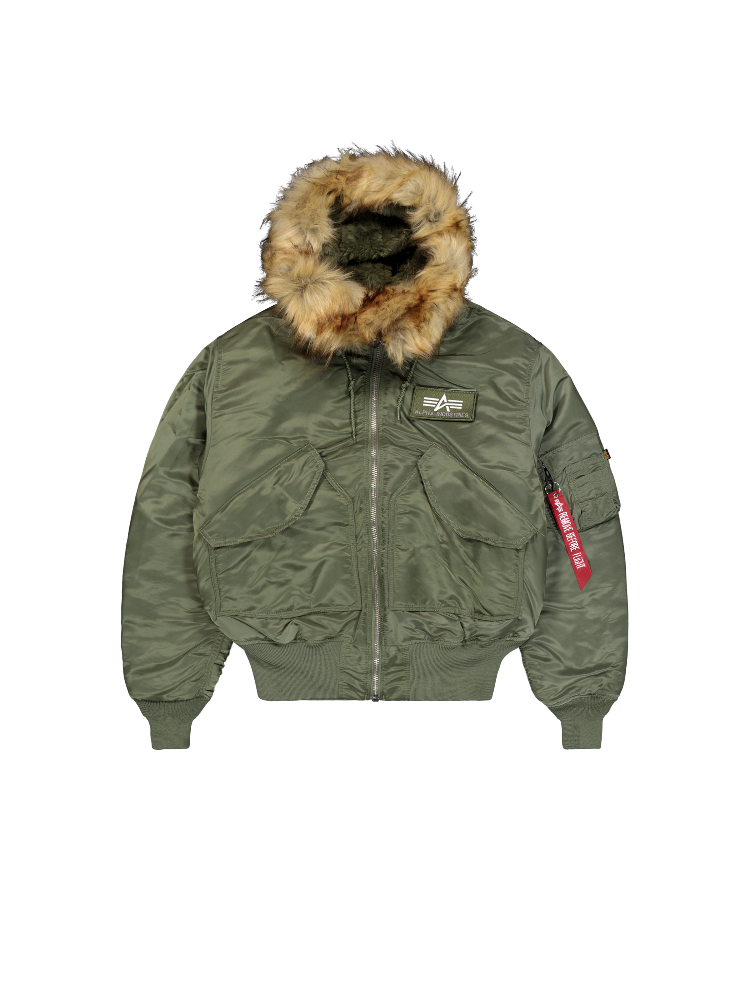For maximum functionality, the bomber jacket features a practical utility pocket on the left sleeve, complete with the legendary Remove Before Flight tag. Two spacious outer pockets provide room for your essentials, while the inner pocket keeps valuables safely stowed away. On the left sleeve, you will also find the subtle flag label that highlights your connection to the original.